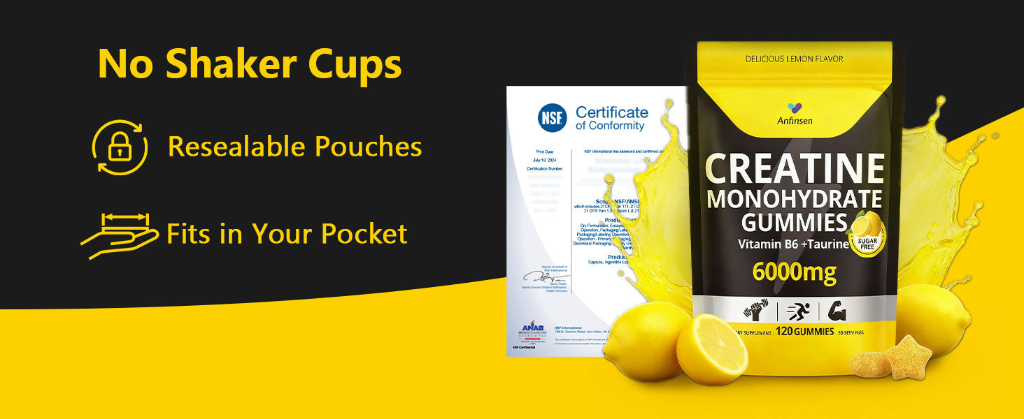 - Portable design: Reusable, resealable, moisture-resistant packaging keeps the product fresh,carry creatine monohydrate gummies in your gym bag for on-the-go energy replenishment,replacing powdered mixes with gummy candies makes portioning and travel more convenient